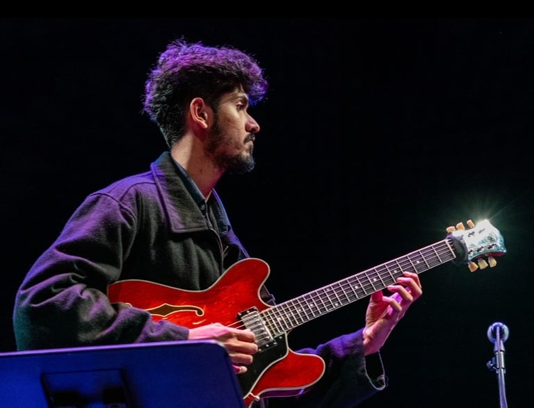 Varad Sahasrabudhe is an incredible guitarist and a composer noted for his broad musical style. His compositions blend his cultural heritage, integrating ideas and sounds inspired from his Marathi roots. At the age of 18, he moved from Pune, India, to Los Angeles to pursue his musical interests.